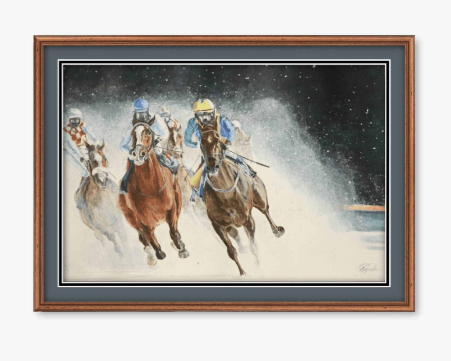 This high quality limited edition print is taken from an original acrylic painting of a competitor on horseback. The original size is 508mm by 762mm (20" by 30").