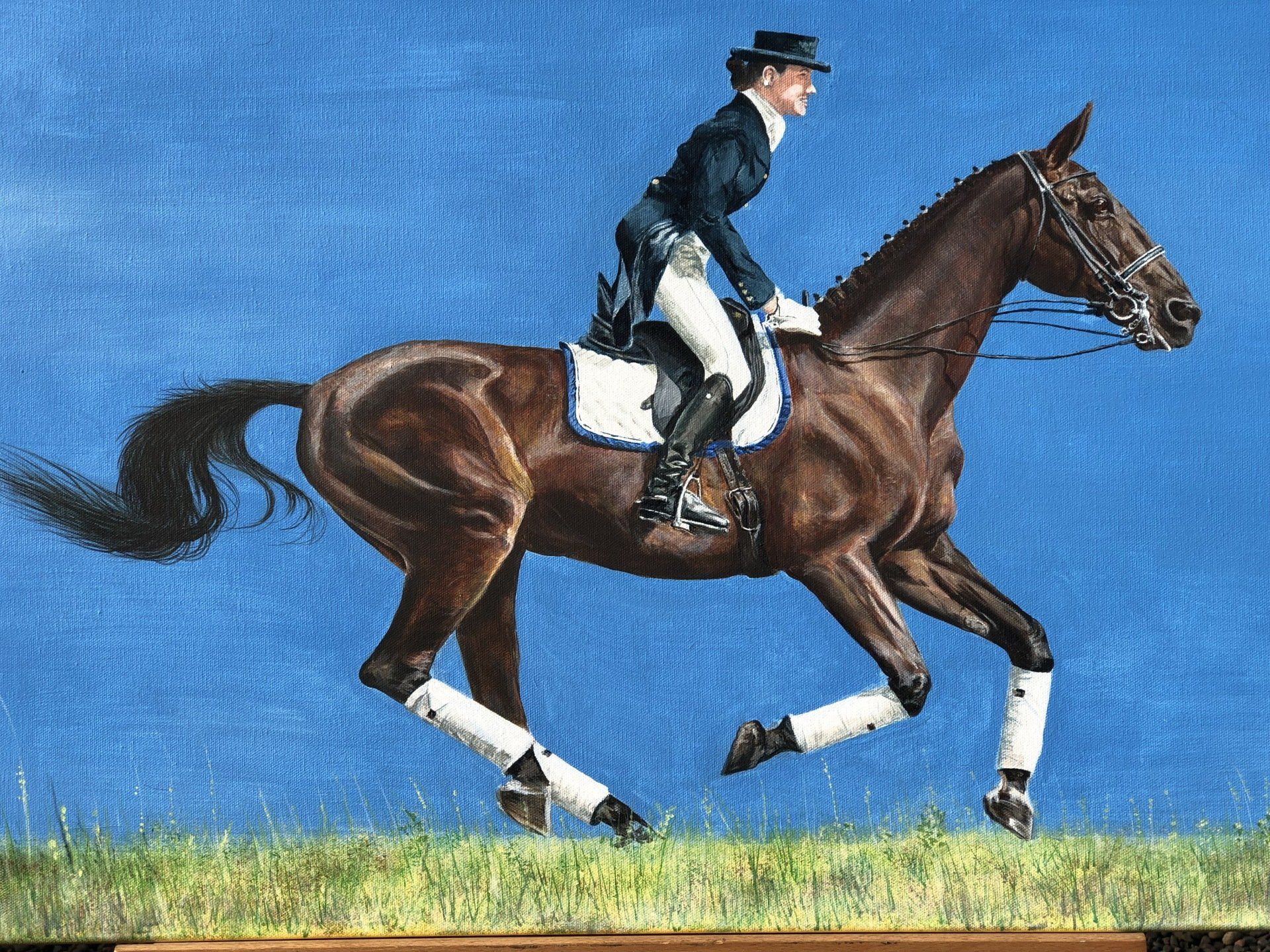Je trouve l'action fascinante dans cette pièce et je suis fasciné par le tonus musculaire des animaux, y compris des chevaux, et c'est derrière l'inspiration et la passion de les peindre.